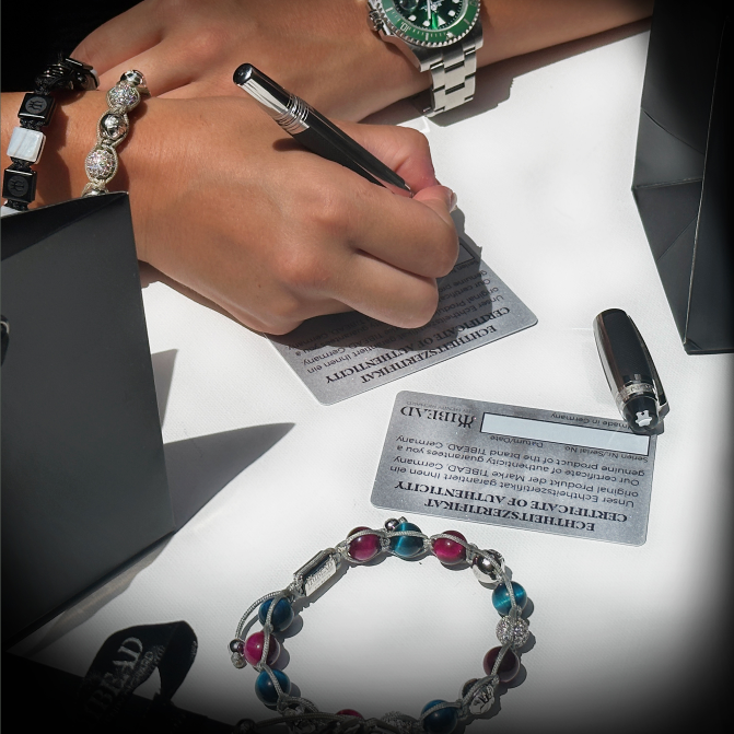 ...jedes unserer exklusiven Schmuckstücke trägt eine eigene Seriennummer und wird mit einem Echtheitszertifikat, in Form einer hochwertigen und fälschungssicheren Karte, ausgeliefert.